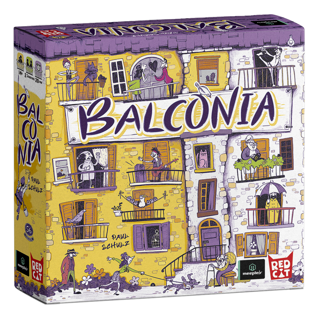 Balconia é um jogo tático leve para 2 jogadores, com componentes 3D incomuns, sobre criar harmonia dentro do mesmo edifício.